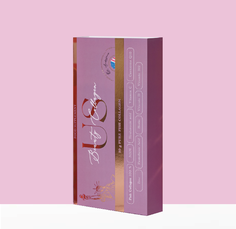 US Beauty Collagen je vrhunska podrška koja može poboljšati osnovnu vlažnost kože, elastičnost i smanjenje bora. Vodite računa o svojoj koži, kosi i noktima iznutra. Dnevna doza 10g peptida ribljeg kolagena sa ukusnim ukusom jagode. 10 aktivnih sastojaka.
